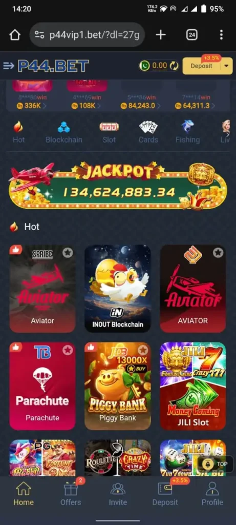 P44Bet Game Free download steps are given below: